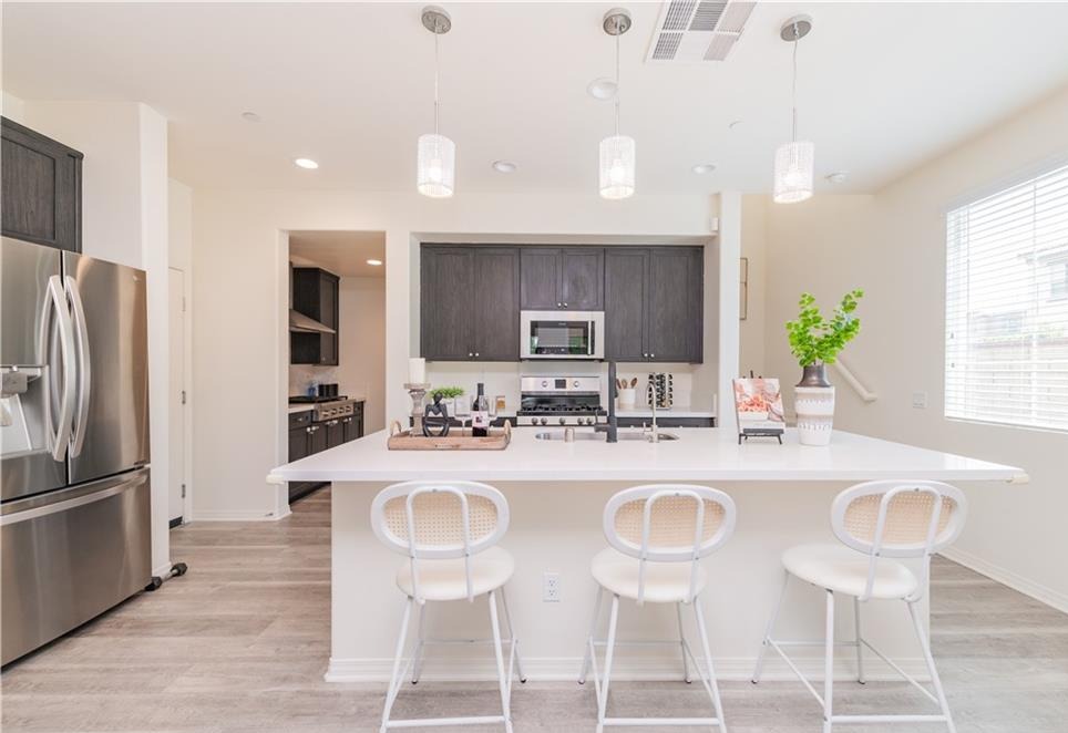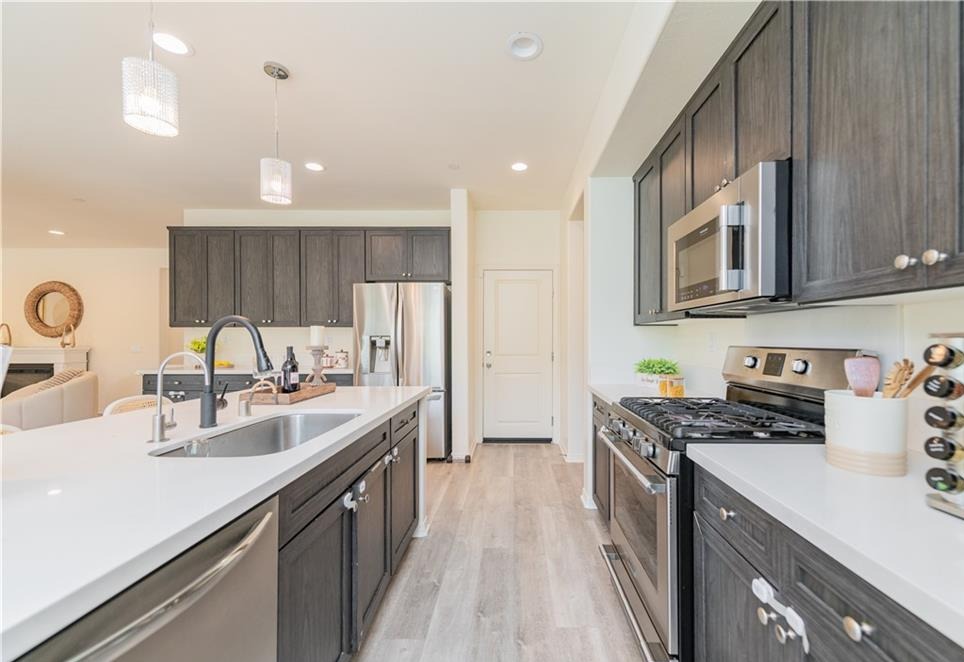 Discover modern living in this nearly new construction home, nestled within the highly desirable Spanish Trails community of Upland. Built in 2018, this thoughtfully designed residence offers a versatile floor plan to suit a variety of lifestyles. The main level is graced with durable laminate flooring and features a convenient downstairs bedroom and a full bathroom, perfect for guests or multigenerational living. The heart of the home is a gourmet kitchen, complete with ample cabinetry and granite countertops. A unique and practical feature is the separate wok kitchen, ingeniously designed to contain the aromas of cooking, ensuring the rest of the home remains fresh. Upstairs, you will find a serene retreat with three additional bedrooms and two full bathrooms, providing ample space for family and visitors. The convenience of an upstairs laundry room adds to the home’s practical appeal. All bedrooms are comfortably carpeted, creating a cozy atmosphere. The community itself extends your living space with amenities such as a BBQ grill, picnic tables, a basketball court, and outdoor fitness equipment. The property’s prime location offers an abundance of recreational opportunities. Just across the street, Greenbelt Park unfolds with its playgrounds, baseball diamonds, picnic areas, and lush, tree-covered walking trails. This home provides easy access to a wide array of shopping, dining, and entertainment options, including the historic Claremont Packing House and the popular Victoria Gardens. Proximity to major transportation corridors, including the 210, 10, 15, and 57 freeways, ensures a convenient commute throughout the region.