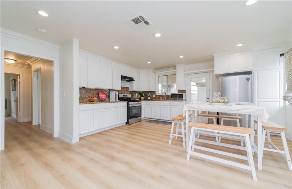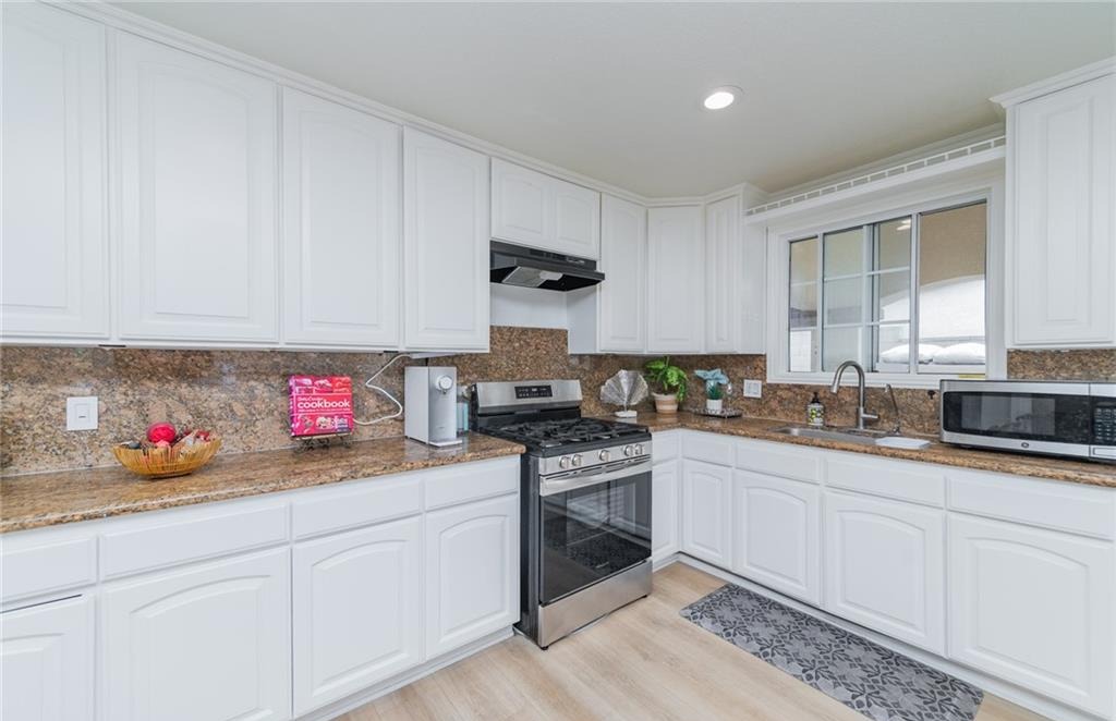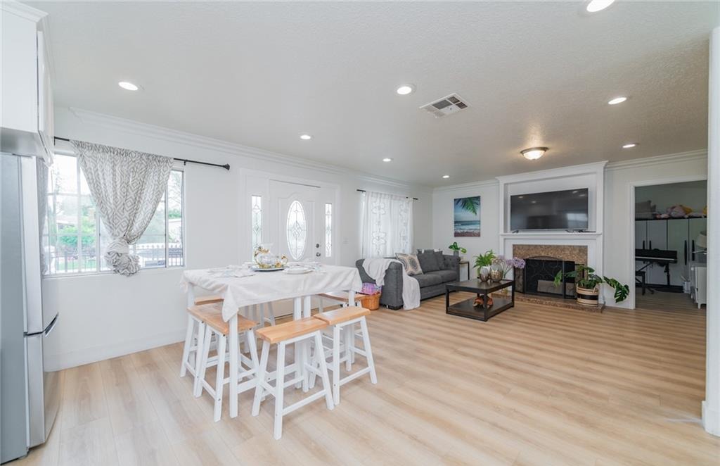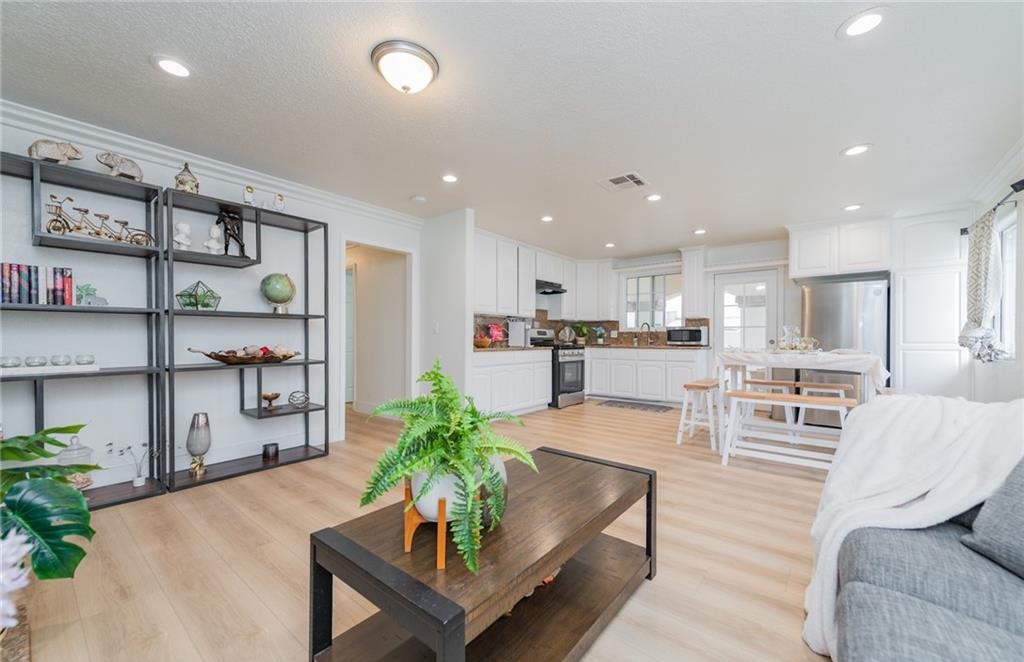 Welcome to this updated California Ranch-style home located in a quiet La Puente cul-de-sac. This single-story residence offers excellent curb appeal with a wide frontage and a fully block-fenced yard. Inside, an open floor plan allows natural light to fill the living spaces. The layout centers around a spacious, open-concept kitchen that connects directly to the living room, which features a comfortable fireplace. Modern updates are found throughout the interior, and the home is protected by a highly durable metal roof. Comfort is maintained year-round with a central air and heating system, supported by two separate water heaters. The main house features four bedrooms and three bathrooms, designed to easily accommodate a variety of living situations. The large primary suite includes a private sitting area and an en-suite bathroom with a jacuzzi tub. An additional junior suite offers its own dedicated space and privacy for extended family or overnight guests. Behind the main residence, the backyard includes a fully detached guest house. Offering one bedroom, a bathroom, and a separate utility room, this versatile bonus structure provides highly practical options for multi-generational living, a private home office, or a quiet workspace. The exterior grounds are fully fenced and designed for easy everyday use. The backyard provides ample concrete patio space, offering a functional and private layout for outdoor seating and weekend gatherings. For parking and storage, the property includes an attached one-car garage, complemented by a wide driveway with plenty of additional space for multiple vehicles. With its highly flexible floor plan, private guest quarters, and secure perimeter, this property offers a highly functional and comfortable living environment.